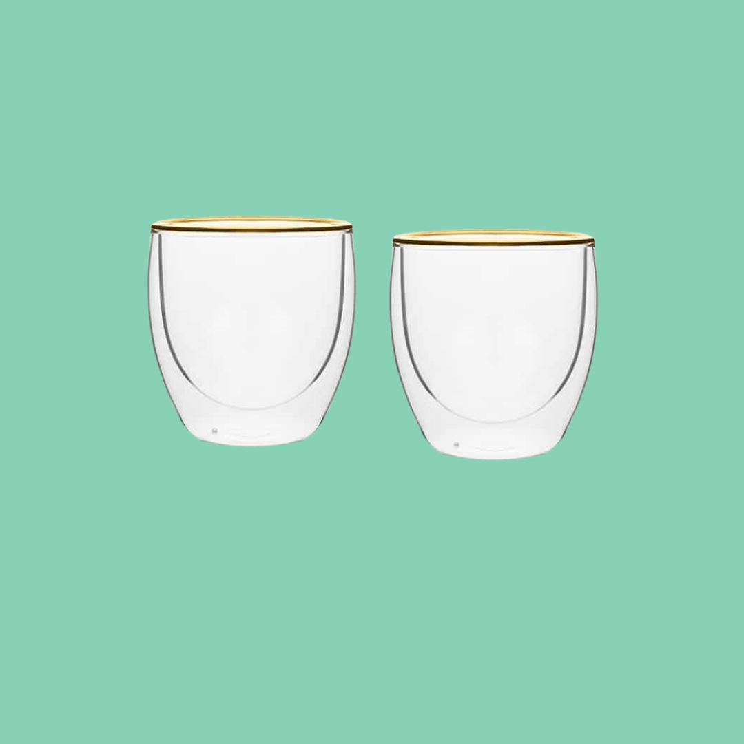 זוג כוסות דאבל גלאס עיטור זהב