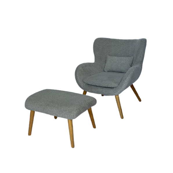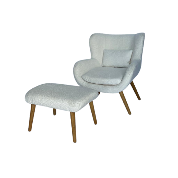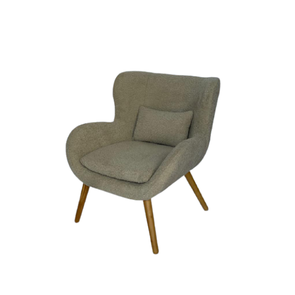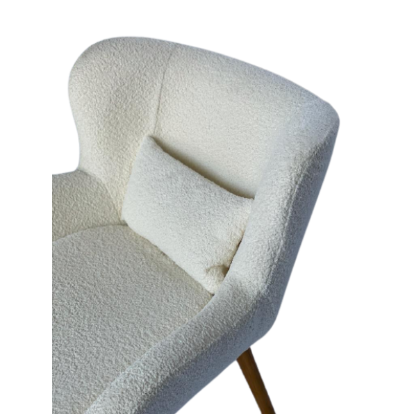 כורסא בד בוקלה איכותית וקטיפתית עם כריות מושב רכות ונוחות.