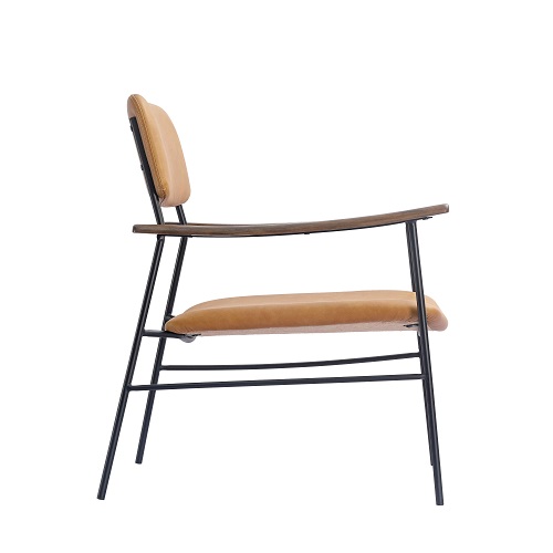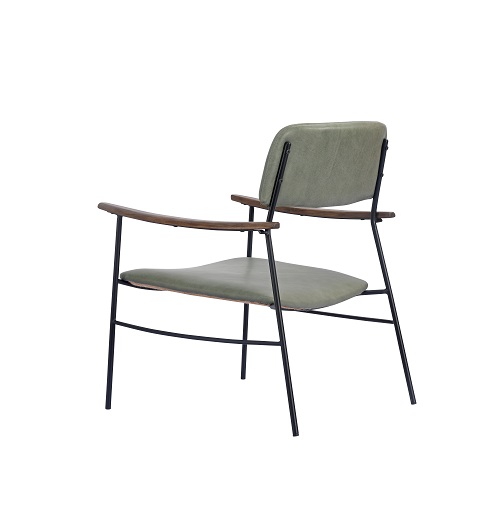 כורסא עור לני בעיצוב וינטג’ תוך שימוש באלמנטים של ידיות עץ אורן וגוף ברזל.