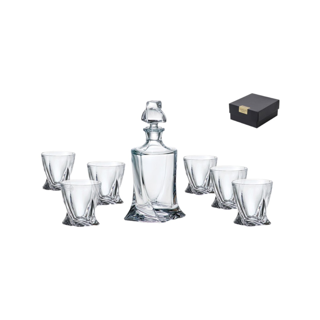 סט דקנטר ו-6 כוסות לוויסקי QUADRO קריסטל בוהמיה