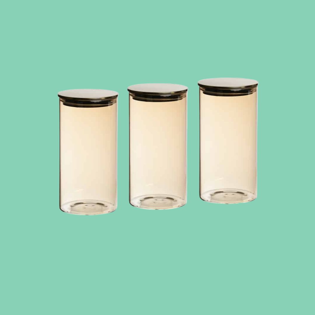 סט 3 צנצנות זכוכית אמבר ומכסה זהב