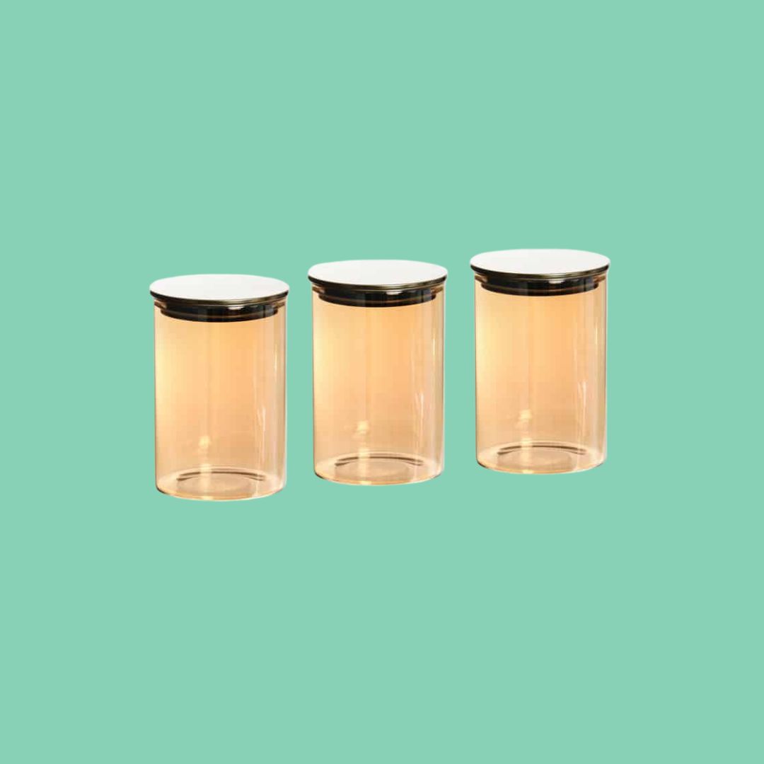 סט 3 צנצנות זכוכית אמבר ומכסה זהב