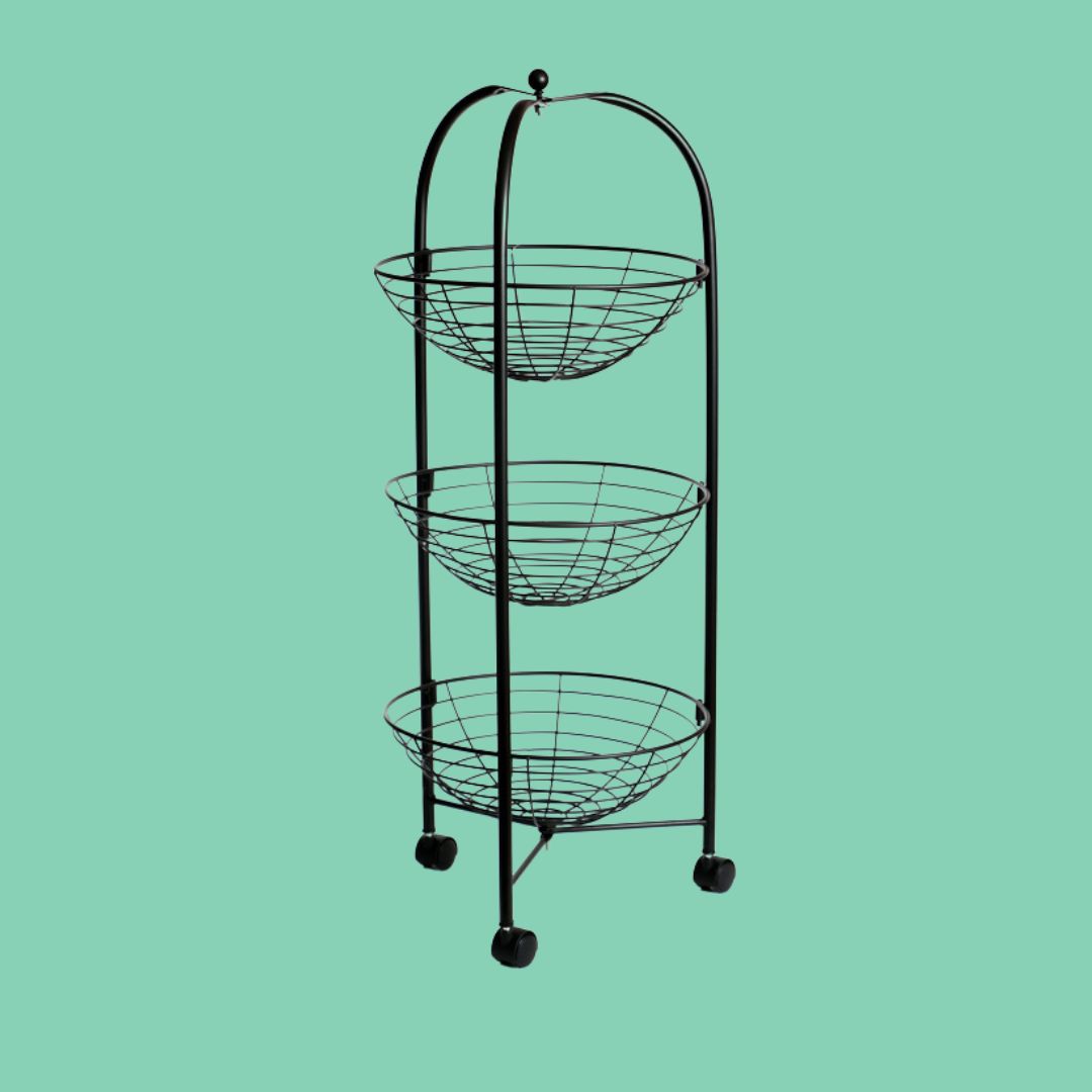 עגלה לירקות עגולה / 3 קומות שחור מט