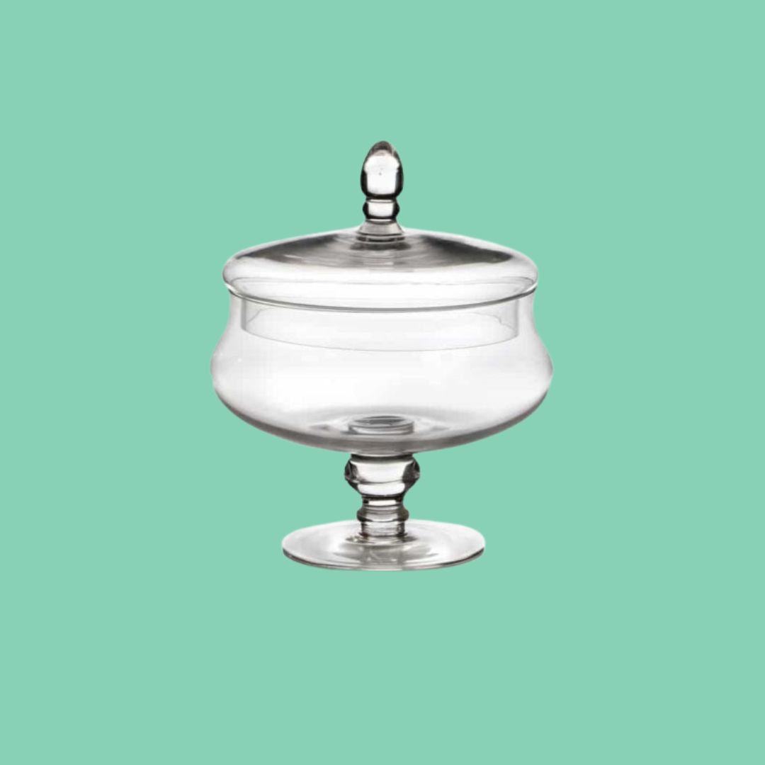 צנצנת זכוכית רגל/מכסה