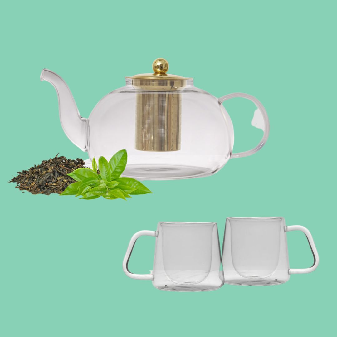 קומקום זכוכית DREAMCHEF + כוסות מאגים זכוכית כפולה