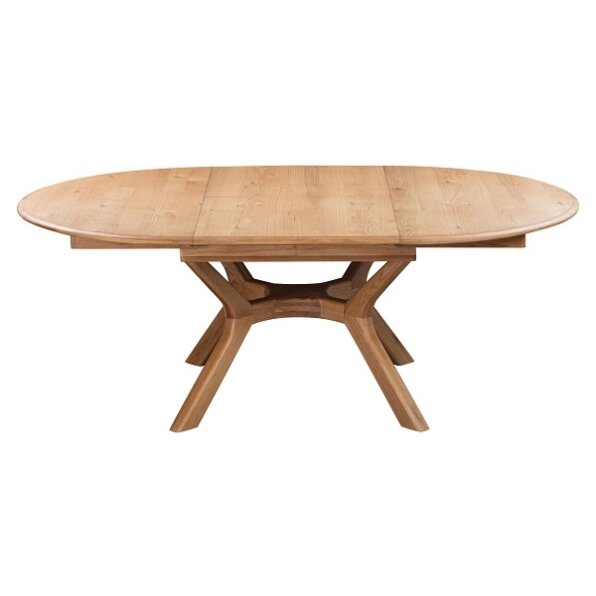שולחן עגול מעץ מלא איכותי נפתח לצורה אובלית מדהימה בפתיחה.