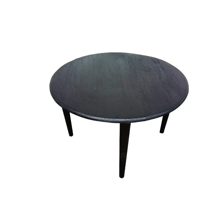 שולחן עץ ראונד לונה בצבע חום\שחור. שולחן ייחודי, המעוצב פלטת עץ עגולה הנישאת על אגן רגלי עץ בגימור אותנטי.