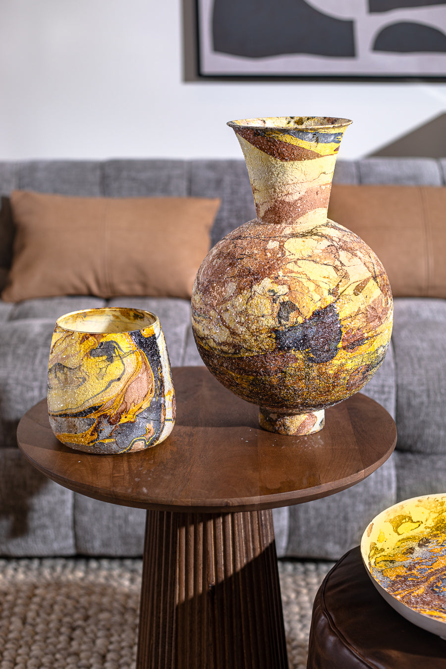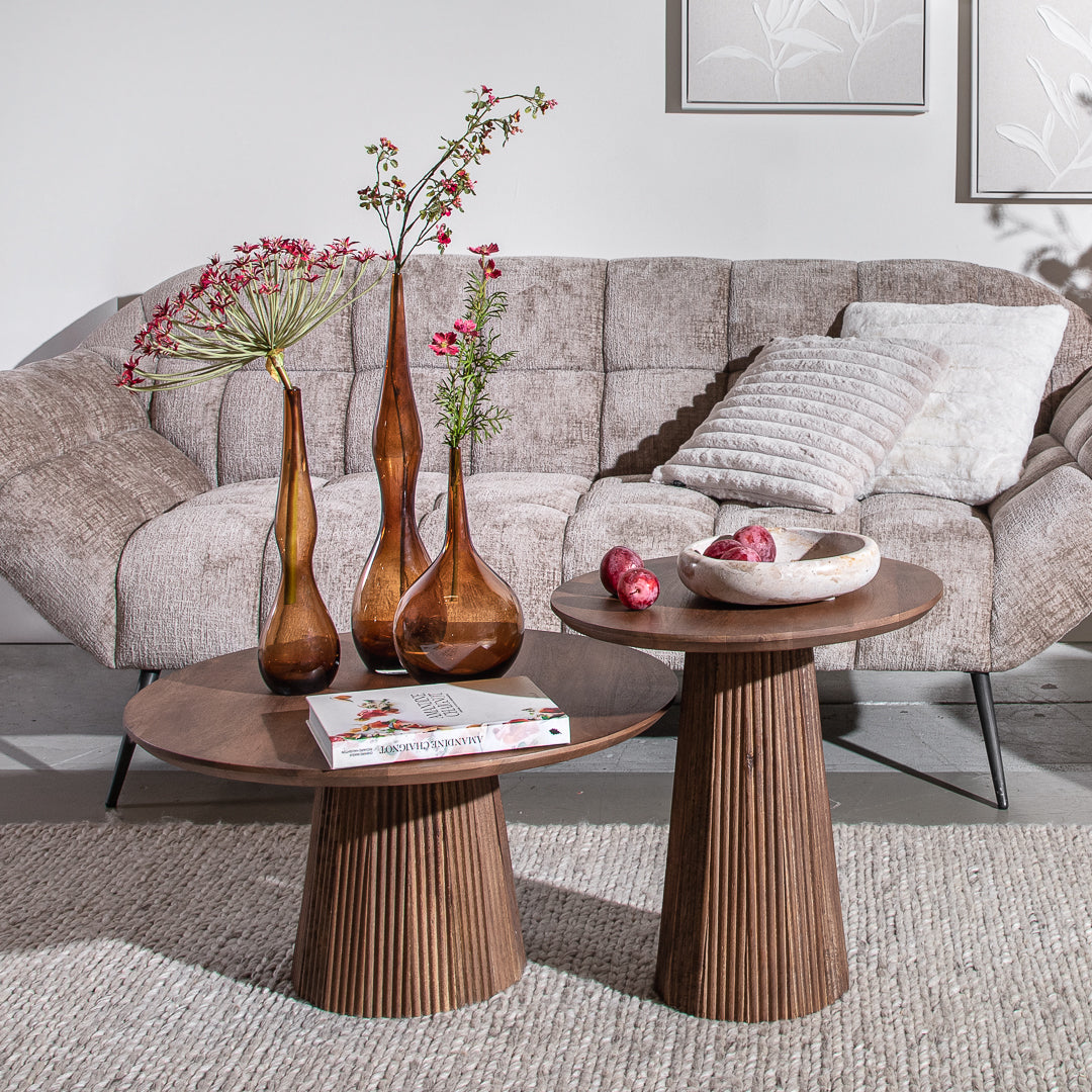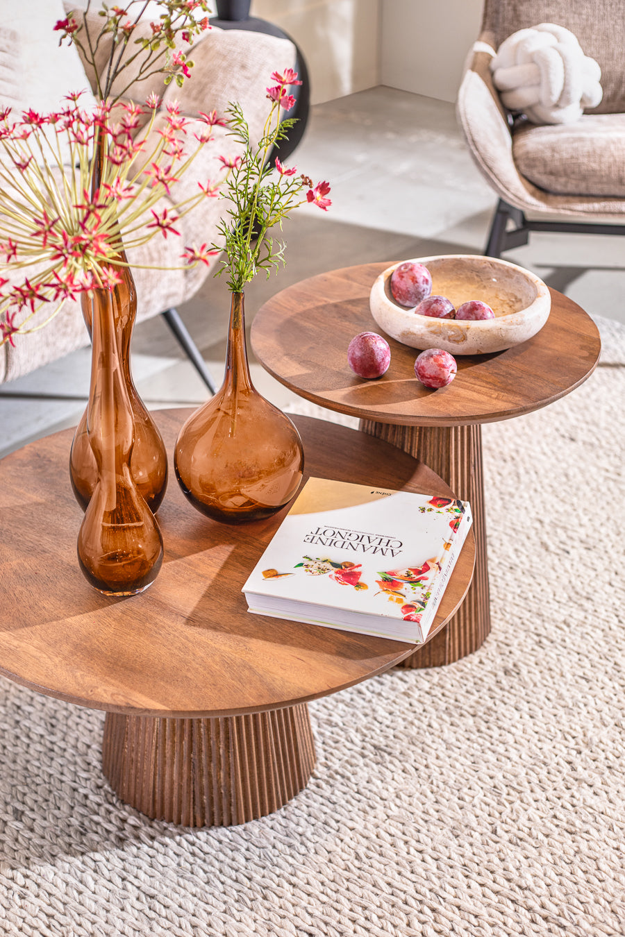 שולחן עץ ליבינג סטרייפס עגול בגוון בז’.