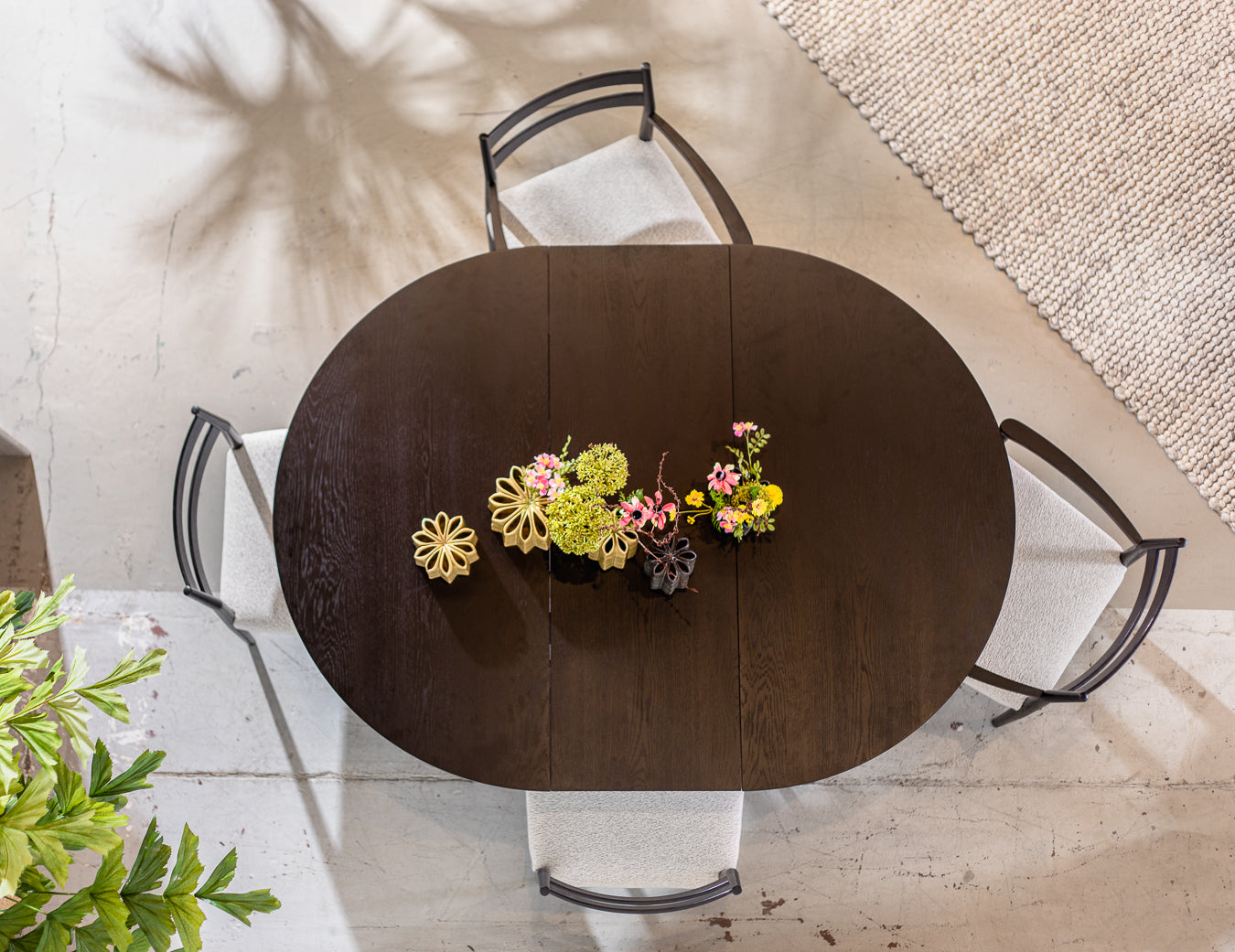 שולחן ייחודי בעיצוב אלגנטי מדוגם פורניר אלון.