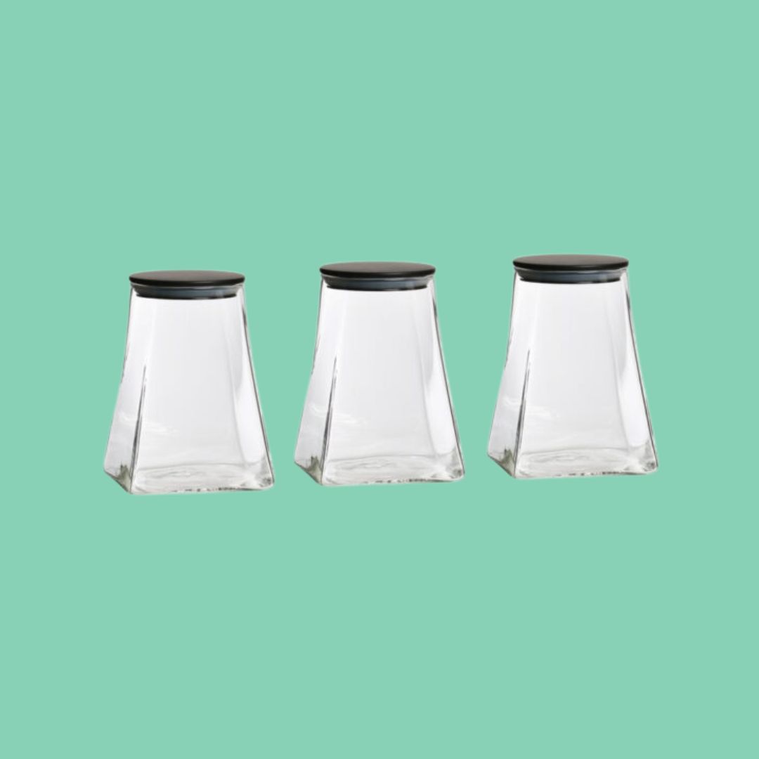 סט 3 צנצנות זכוכית ומכסה שחור
